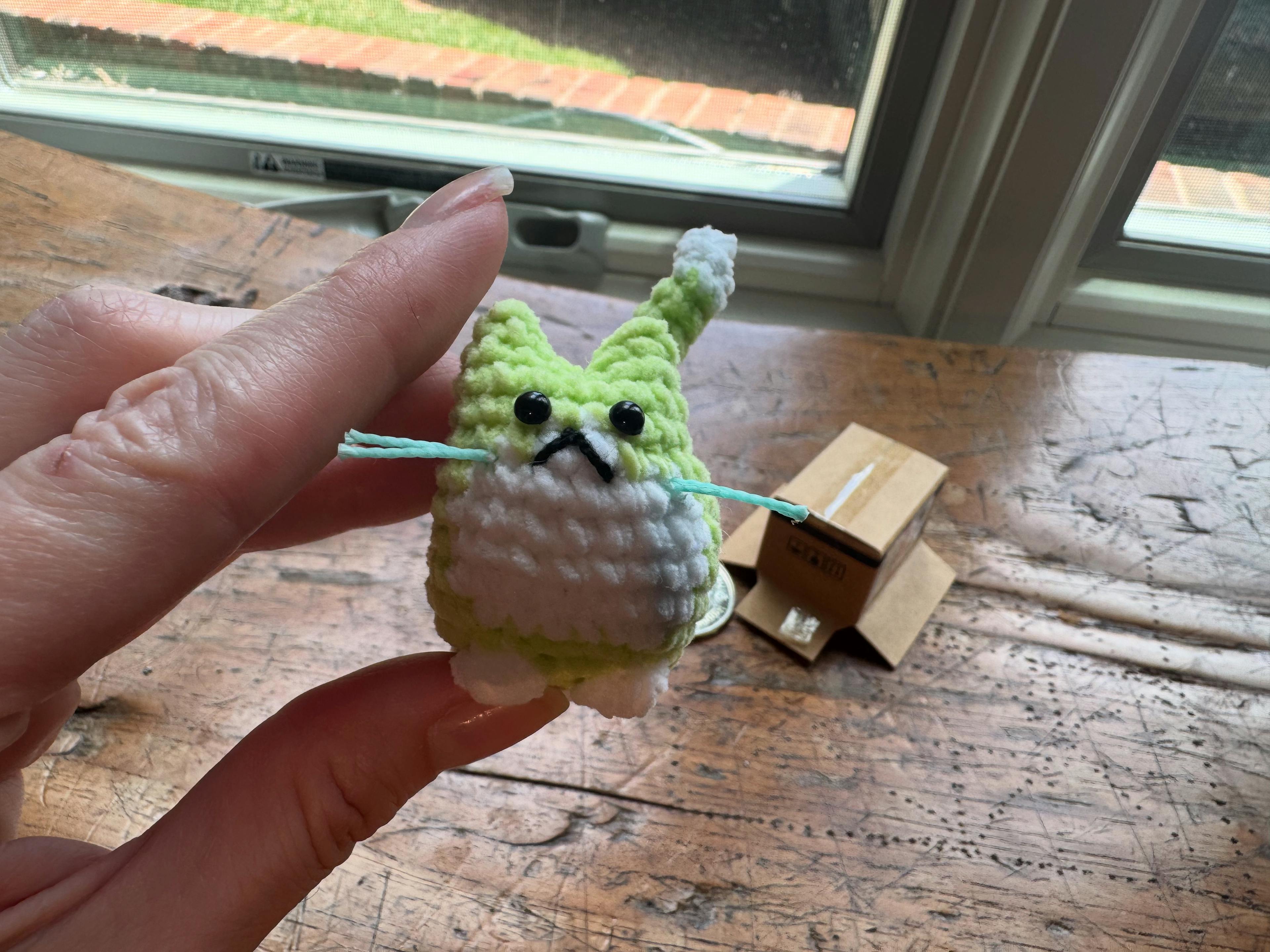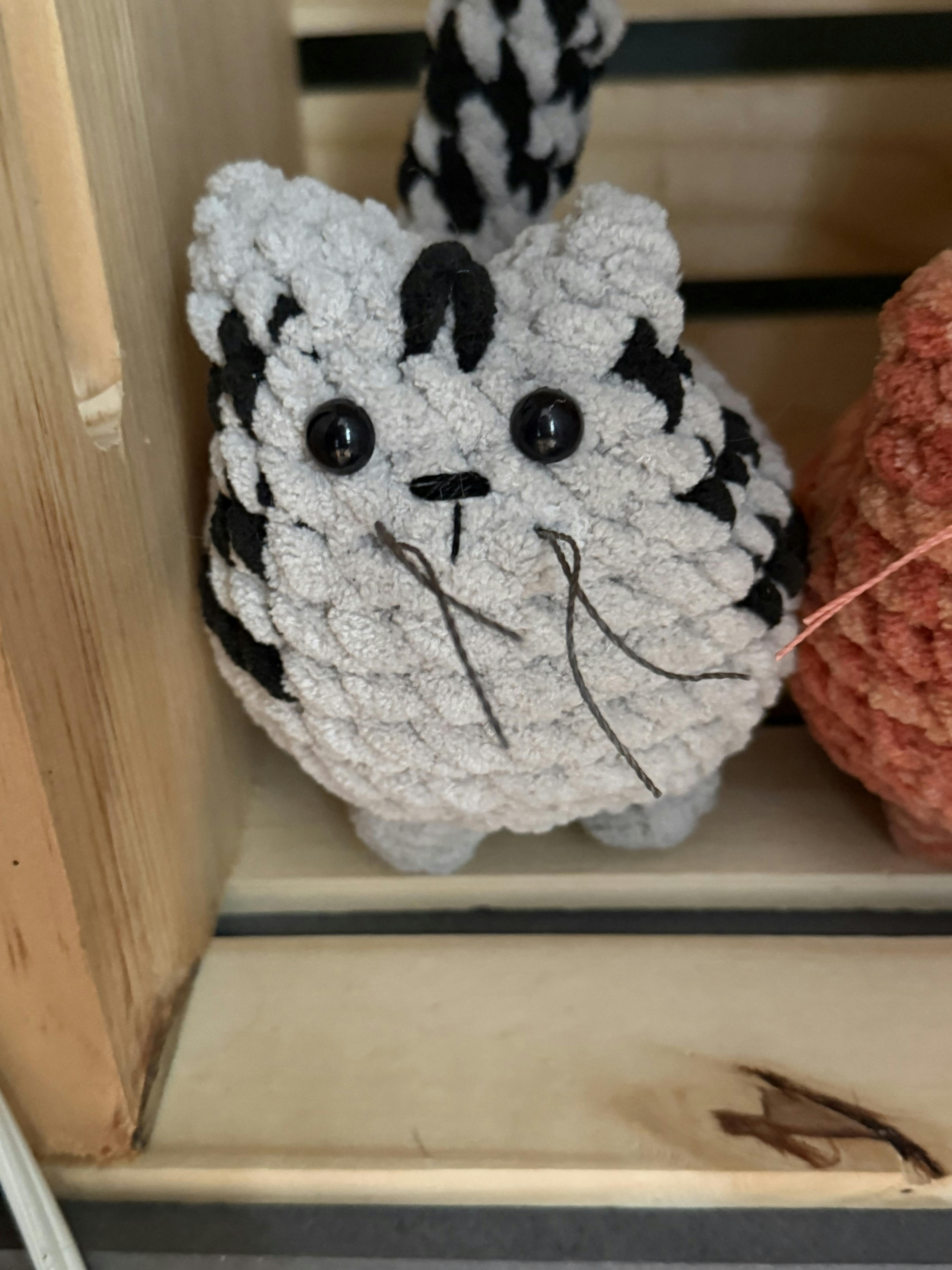 I’m Ashley, the hands behind Cats, Crochet & Coffee. My crochet addiction began two years ago with a Woobles kit, and I’ve been hooked ever since. Each of my little stuffies is 100% handmade and one-of-a-kind. Each has its own personality and is made with love, using high-quality, soft yarns that are both durable and cuddly.
