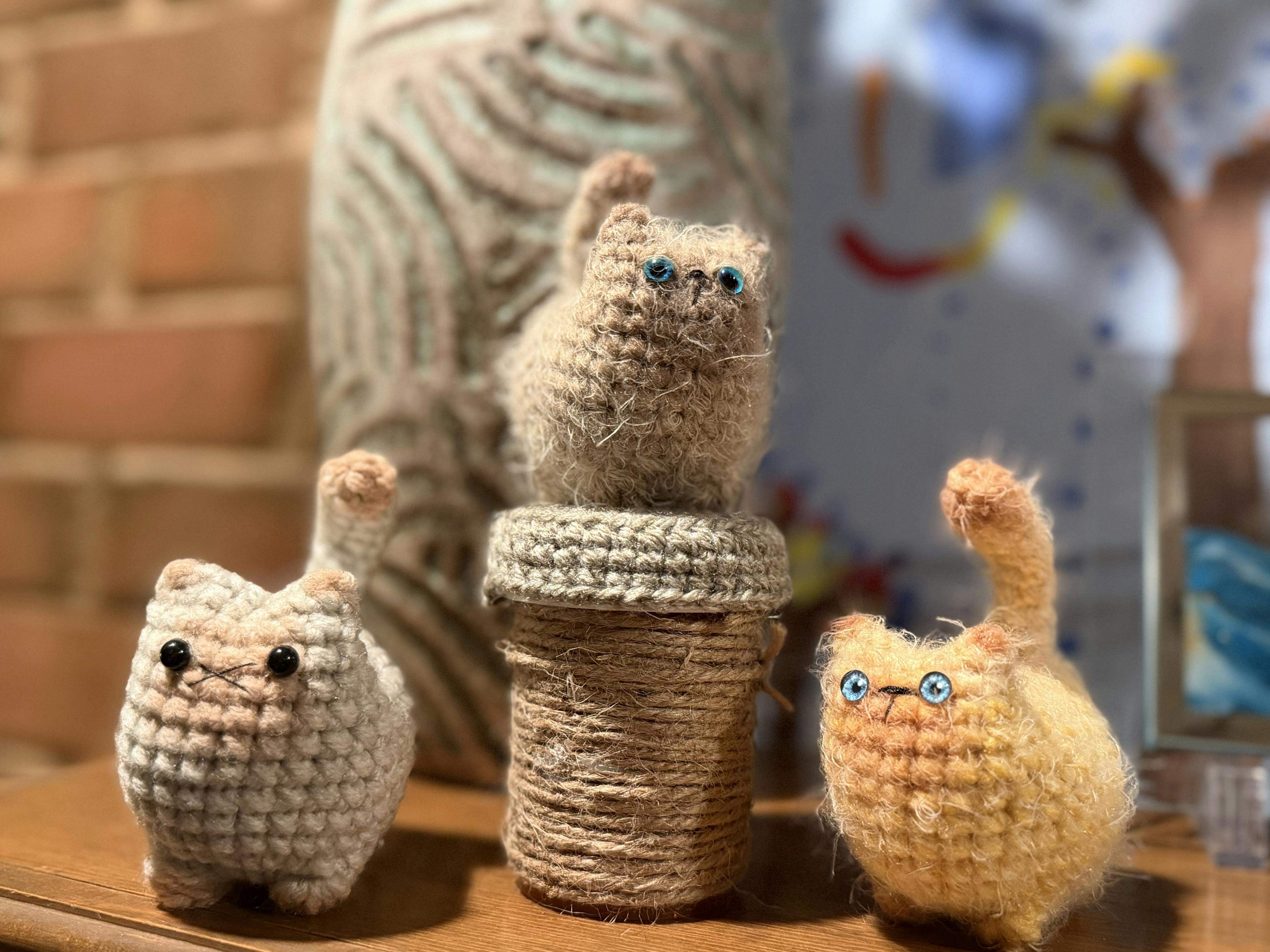 Come see real and crochet adoptable cats at the Fancy Cat Cafe!